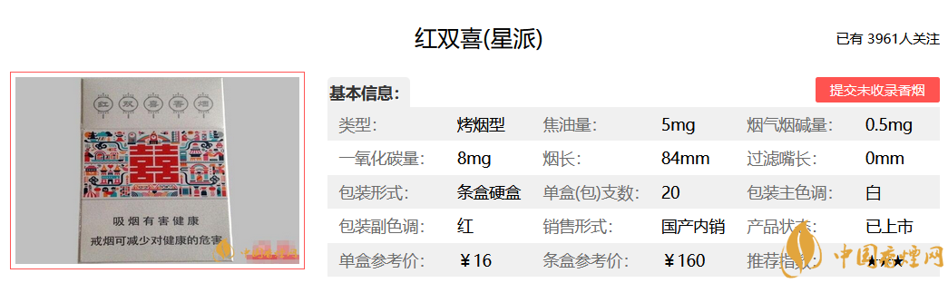 紅雙喜(星派)香煙價(jià)格參數(shù)