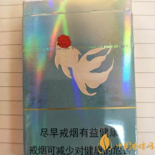 煙盒背面的圖案,是一條金魚。通過查詢資料,得知這是以手工繪制的民國年間川西民居宅院普養(yǎng)的“鶴頂紅”金魚,游弋于“哥窯青瓷”之中。紅帽子金魚昂首向上,寓意“鴻運當頭,力爭上游”。這也是此款好運寬窄香煙名字的由來。粗支款的金魚游弋方向,正好與細支相反。那么,這條金魚有毒么?哥窯青瓷的冰裂紋茶具,很有文化氣息。