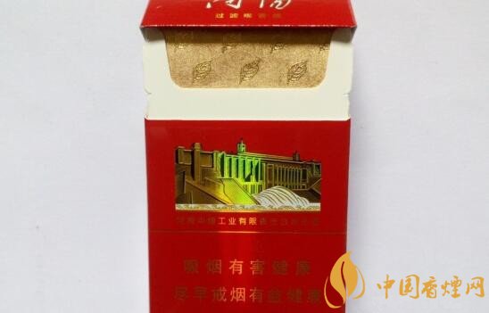 黃金葉大紅南陽包裝類似硬包中華,顏色上也是采用了鮮艷的大紅色,建筑應(yīng)該是南水北調(diào)丹江口水庫的源頭,背面,是南水北調(diào)中線途徑的較大城市,從南往北依次是南陽、平頂山、許昌等地。