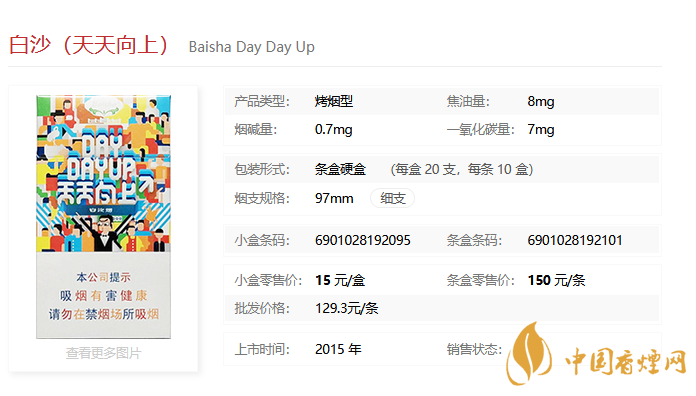 白沙天天向上香煙基本信息