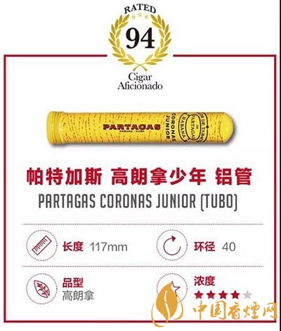 6款古巴雪茄也在最新的榜單中,其中包括帕塔加斯 高朗拿少年鋁管Partagas Corona Junior (Tubo),這是總得分最高的雪茄,它獲得最高的94分。當(dāng)中共有六款型號的雪茄:丘吉爾、高朗拿高達(dá)、雙尖魚雷、格蘭德、小高朗拿和羅布圖。其中,雙尖魚雷表現(xiàn)最出色,七款雪茄都在91分的高分或者以上,下面就由香煙網(wǎng)小編帶大家來了解一下相關(guān)信息。