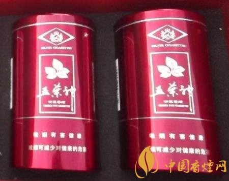 五葉神(典藏罐裝)106元/盒。香煙為五葉神品牌旗下的一款香煙。罐裝,紅色底,銀色文字,鋁合金材料,觀感雅致大方 優(yōu)秀配方工藝師配方,手工選取光潔無暇3年自然醇化期煙葉 神農液生物減害技術。煙氣中亞硝胺,苯并芘,自由基等有害物質綜合降幅達到63.8%。