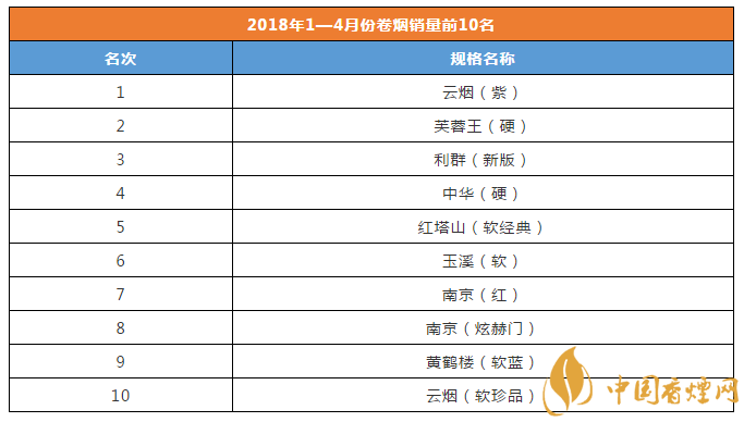 2018轉(zhuǎn)眼已經(jīng)即將過去五個月,作為煙草人2018年你知道哪些煙最好賣嘛?你知道哪些煙銷量最高嘛?下面香煙網(wǎng)小編為大家整理介紹2018年1—4月份卷煙銷量前10名。一起來看看吧!