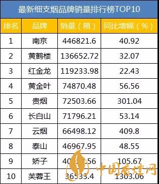 2018最新細(xì)支卷煙品牌銷量TOP10