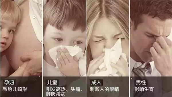 除了二手煙,還有各種對人體造成傷害的污染氣體,包括各種甲醛、TVOC(總揮發(fā)性有機化合物)等等,這些東西不僅毒性非常大,還伴有刺激性的味道。