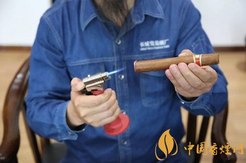 單手45°持茄,火焰正對(duì)雪茄端面,盡量靠近但不觸碰,轉(zhuǎn)動(dòng)雪茄,到端部變黑即可停止,過(guò)分點(diǎn)燃會(huì)導(dǎo)致雪茄苦澀。