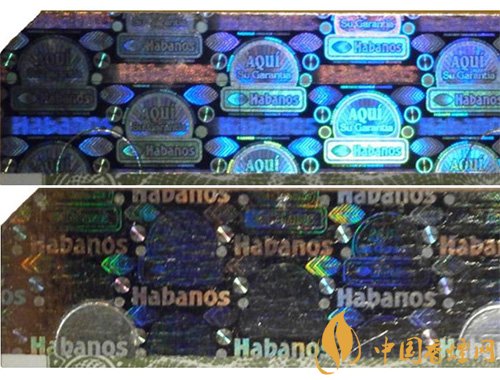 2013前的激光標,圓圈內(nèi)AQUI字樣清晰可見,方框內(nèi)Habanos字樣相對較小。而2013后的激光標,圓圈內(nèi)的AQUI字樣基本上已經(jīng)模糊不可見,而Habanos字樣則變得更大更清晰。