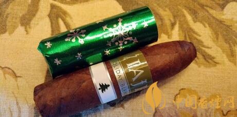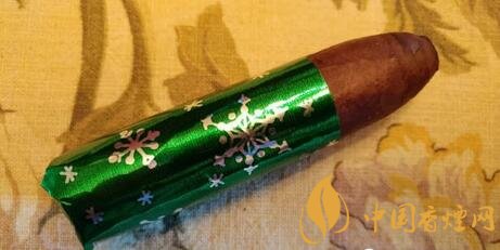 現(xiàn)代比較出名的就是2013 征途推出的一款圣誕樹雪茄,雪茄是60環(huán)徑,4英寸的短魚雷??偣舶l(fā)布了400盒雪茄,每盒雪茄里面有20支??偣舶l(fā)型了8000支。這款雪茄比較有特點是,每支雪茄都用圣誕綠色包裝紙包裹,打開后才會看到兩個煙標。其中一個煙標用圣誕樹來表達雪茄的特征。