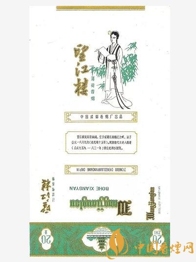 上世紀(jì)80年代,中國成都卷煙廠曾出品有“望江樓”煙標(biāo),該標(biāo)主版描繪了在郁郁蔥蔥的竹林映襯下,薛濤手捧“薛濤箋”正在思索的畫面;底標(biāo)位置印有“望江樓原名崇麗閣,位于成都東南錦江之畔,建于公元一八八九年(清光緒十五年)。我國唐代女詩人薛濤(公元七五九~八三一年)曾在此取水制箋”字樣。