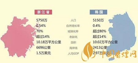 之所以選取韓國煙草與浙江煙草做比較,一個基本的依據(jù)是韓國與我國浙江省的人口、陸地面積等基本屬性“差不多”。