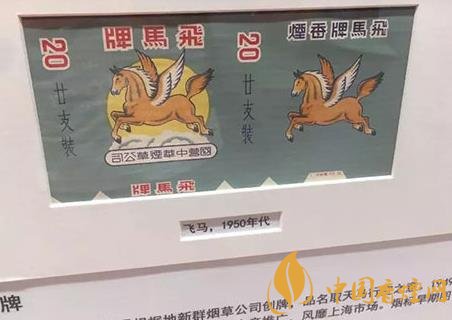 ——“飛馬”(上世紀50年代出品),1943年淮南抗日根據(jù)地新群煙草公司生產(chǎn),煙標早期圖案為帶翅膀的飛馬?!?949年,國營中華煙草公司以“解放區(qū)名煙”對其進行推廣,風靡上海市場。煙標后來改為騰空躍起的棗紅駿馬。