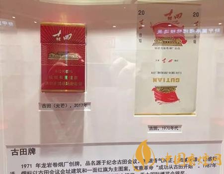 古田牌,1971年龍巖卷煙廠創(chuàng)牌,品名源于紀念古田會議。煙標以古田會議建筑和一面紅旗為主圖案,寓意“成功從古田開始”。