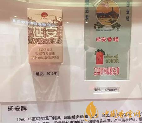 延安牌,1960年寶雞卷煙廠創(chuàng)牌,品名取自革命圣地延安,寓意“延安精神永放光芒”。煙標以“七大”會址、寶塔山和壺口瀑布等延安地標為主圖案。