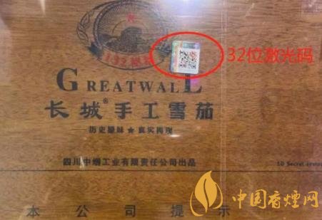 一般正品盒子正面貼有拇指蓋寬長、透明的32位激光碼防偽標(biāo)志,四川省是從2019年開始對每一家零售戶的每一條雪茄煙,都打上了該零售戶唯一的32位激光碼(但是全國各省的情況不一樣,有的地方煙草公司還沒有開始實行打激光碼)。32位碼上包含了打碼時間(能查詢卷煙銷售日期)、件碼派生號(能查詢卷煙的生產(chǎn)日期)、各市、縣煙草標(biāo)識(各市、縣的唯一標(biāo)識)、零售戶的唯一編碼(供消費者和專賣人員辨別卷煙信息)。