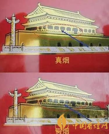 1、條盒正面“中華”兩字及天安門商標(biāo)紙印刷是辨別真假的重點(diǎn),真煙與假煙有明顯的區(qū)別。