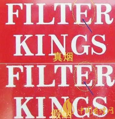 6、通過商標(biāo)紙側(cè)邊字母印刷工藝辨別真假。真煙字體邊沿比較干凈,與紅色部分切換比較清晰;假煙字母印刷比較粗糙,字母邊沿多處脫漆,印刷字母比較粗大。
