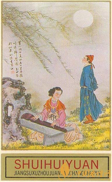 江蘇徐州卷煙廠出品于上世紀90年代的白底“水繪園”煙標,主版為水繪園遠景圖;副標展現(xiàn)的是:皓月當空之夜,明末清初文學家冒襄(字辟疆)佇立于幽雅寧靜、垂柳依依的水繪園中,聚精會神地傾聽秦淮名妓董小宛彈奏古箏的場景;側標印有相關文字介紹:“水繪園,中華園林之‘孤本’。明末四公子之一的冒辟疆,偕金陵名妓董小宛棲隱如皋水繪園。斯時,文人志士薈集其間,氣節(jié)風流,名動天下。”此外,我國火柴生產企業(yè)也出品過寄予“有情人終成眷屬”祈盼的火花。