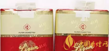 真煙封簽中間“煙徽”顏色較深,背面采用機(jī)器上膠,為兩條靠邊的平行膠痕。(上真下假)