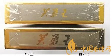 假冒卷煙頂部“芙蓉王”字號(hào)明顯較大。