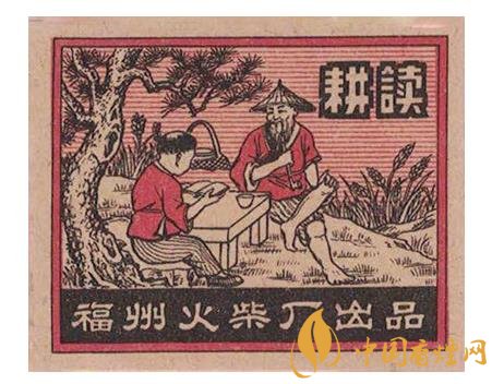而福州火柴廠出品于1954年的“耕讀”(圖4)火花,則表現(xiàn)了一位頭戴斗笠的老農在春耕間隙,翹著二郎腿坐在田邊青松下的石頭上,胳膊肘斜放于在石桌,面帶微笑,抽著旱煙陪伴孫兒讀書的場景。再看老農身后的簍子,以及桌上的碗筷,似乎是描寫這個老農在吃完孫子給送的飯后,不忘“耕讀傳家”祖訓,利用吃飯休息間隙,輔導孫子多學點知識。