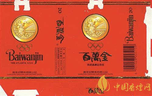 1996年,第26屆夏季奧運會在美國亞特蘭大舉行。上世紀90年代,廣東韶關卷煙廠出品了“百萬金”煙標(圖②)。該煙標以紅色為底色,主、副版上均印有金燦燦的奧運金牌以及奧運五環(huán)圖案,副版上還印有“1996 ATLANTA USA”字樣。