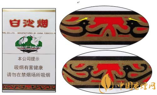 白沙(硬)因江南名泉式 ---“白沙古井”而得名,包裝以“白沙古井” 為背景,象征吉祥如意的雙鶴圖形為主體圖案。產(chǎn)品不斷應用新技術,科學配方,合理配香配料,口味特點:煙香濃馥、諧調(diào),余味純正舒適。現(xiàn)就該卷煙小盒鑒別方法介紹如下: