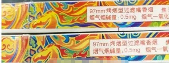 真煙藍(lán)色下邊是過(guò)渡的淡藍(lán)色,假煙無(wú)過(guò)渡色直接變成綠色。真煙中間為藍(lán)色,假煙全都是綠色。圖右側(cè)四個(gè)標(biāo)注處相同,真煙為藍(lán)色的三個(gè)圓珠,假煙為綠色的三個(gè)圓珠。