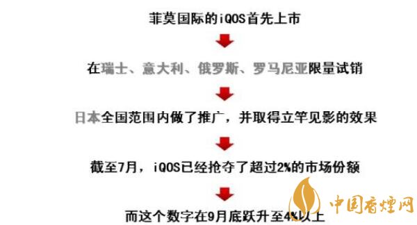 這種技術(shù)改革和行業(yè)發(fā)展為企業(yè)和煙民創(chuàng)造了雙贏的局面,加熱不燃燒(HnB)在減少煙草相關(guān)危害方面的作用不僅僅是體現(xiàn)在技術(shù)理論層面,且已經(jīng)有商業(yè)實(shí)例。例如菲利普莫里斯公司的加熱不燃燒產(chǎn)品iQOS憑借其容易使用、沒有煙灰和二手煙、以及充分模擬了吸煙的感覺等特點(diǎn),目前在日本、葡萄牙、意大利、羅馬尼亞和俄羅斯等地受到了消費(fèi)者極大歡迎。自2016年第二季度開始,iQOS在日本全國范圍內(nèi)推出后,已經(jīng)獲得了12%的市場份額。富國銀行分析師Bonnie Herzog對加熱不燃燒(HnB)產(chǎn)品的前景持樂觀態(tài)度:“估計(jì)到2025年,菲利普莫里斯公司的iQOS可能會(huì)取代發(fā)達(dá)市場30%的傳統(tǒng)卷煙業(yè)務(wù)。”