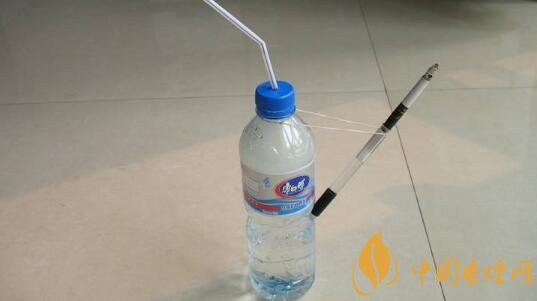 第三步:裝上大半瓶子清水,一個水煙就做好了。用嘴從一側(cè)軟管吸氣的時候,瓶子里的空腔氣壓降低,在大氣壓的作用下,空氣從裝有香煙的軟管進(jìn)入,經(jīng)過瓶子里清水的過濾,最后被吸進(jìn)人嘴里,這一步在怎么自己做水煙中最為詳細(xì)。